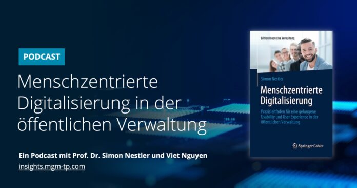 Daniel Rasch: Hallo und Willkommen zu einer neuen Folge des mgm-Podcasts. Mein Name ist Daniel Rasch. Moin aus Hamburg. Der Anlass der heutigen Folge ist einmal etwas Anderes, nämlich eine aktuelle Buchneuerscheinung. Der Titel bringt die nächsten Minuten des Gesprächs klar auf den Punkt, nämlich „Menschzentrierte Digitalisierung – Praxisleitfaden für eine gelungene Usability und Userexperience in der öffentlichen Verwaltung“. Für einen Praxisleitfaden ist ein Podcast wahrscheinlich das falsche Medium, aber eine Annäherung an menschenzentrierte Digitalisierung und die Bedeutung für die Verwaltung ist bestimmt drin. Eine Kollegin und ein Kollege haben einen winzigen Beitrag in dem Buch geleistet: Sie standen für die vielen Interviews mit Expert*innen Rede und Antwort. Nun freue ich mich, den Macher der Interviews und den Autor der über 270 Seiten hier im Podcast begrüßen zu dürfen. Es ist Simon Nestler. Er lehrt und forscht als Professor für Mensch-Computer-Interaktion an der Technischen Hochschule Ingolstadt und berät Unternehmen rund um Usability und User Experience. Außerdem freue ich mich, dass mein Kollege Viet Nguyen sein Wissen aus der Praxis und den Projekten bei uns beisteuert. Viet ist UI-/UX-Designer und arbeitet an unserem Standort in Leipzig. Hallo und moin zusammen.